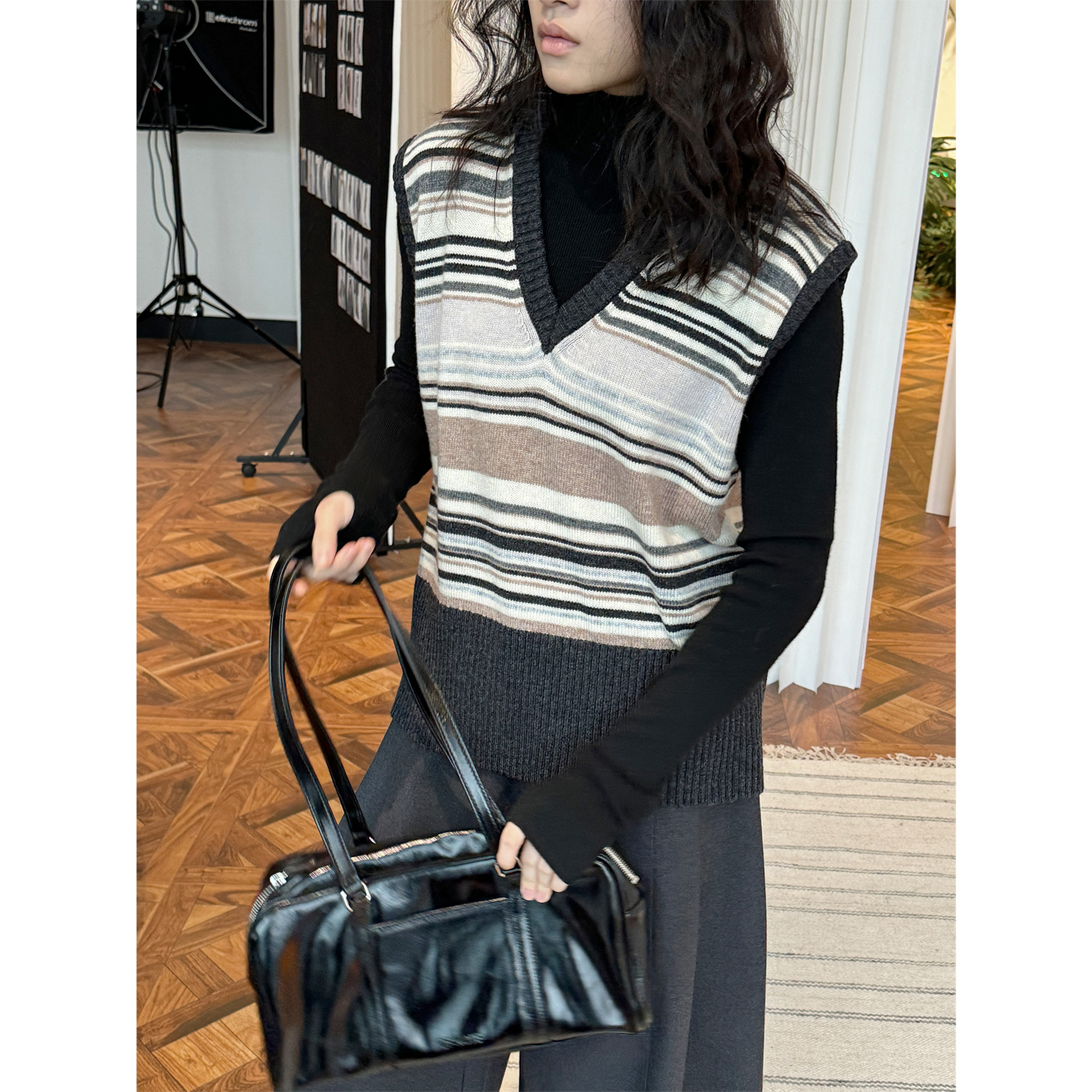 ルーヴル早春新作韓国版レトロvネックウールニットベストしなやかで骨があります。