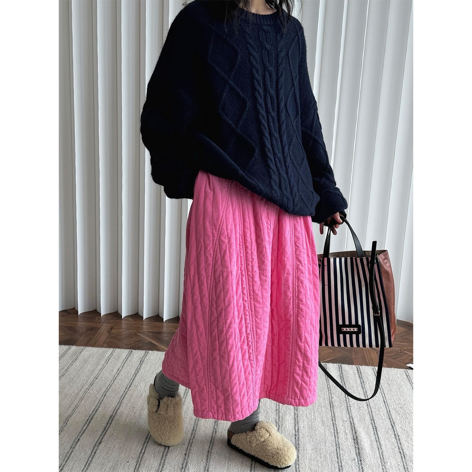 ルーヴル冬の新日系レトロでシンプルなキルティング綿のコーデュロイスカート