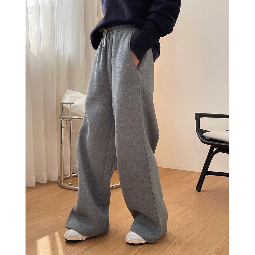灰色のベルベットのズボンの秋の新しい韓国版の流行の高い街の風はゆったりしていて、やせている広脚の高い腰のカジュアルなズボンの女性を現します。