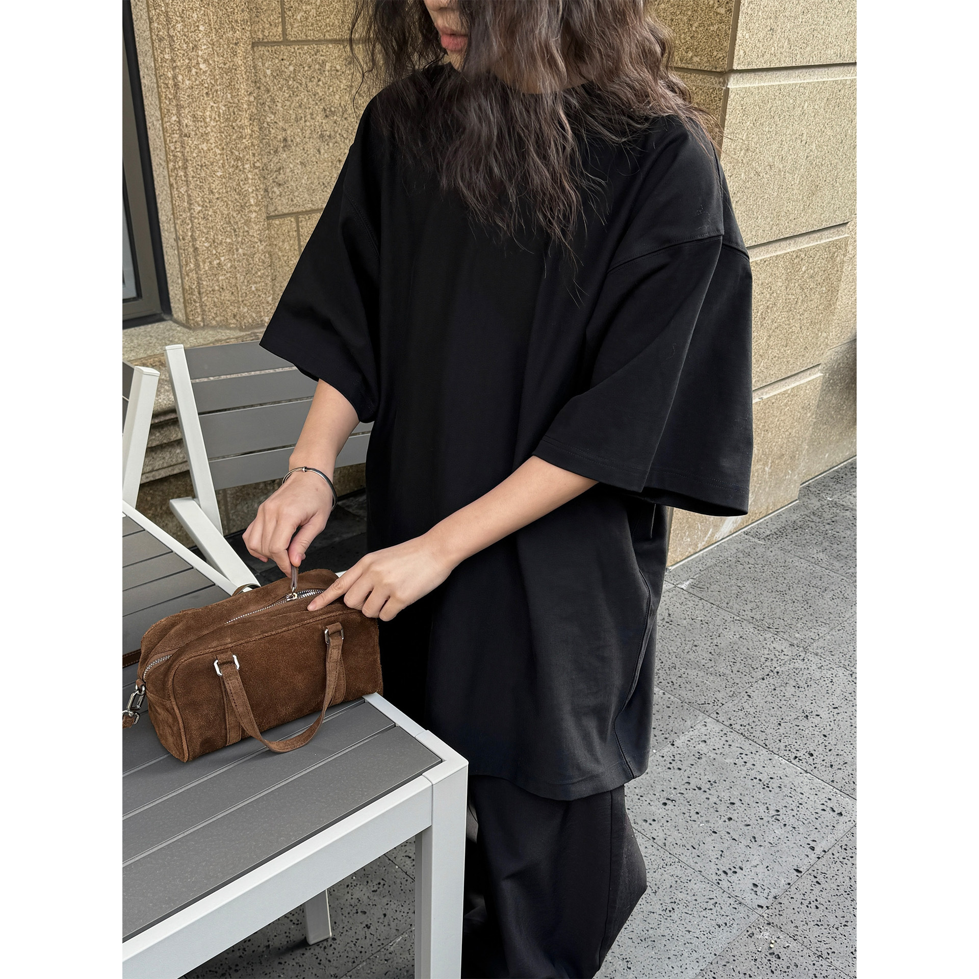 ルーヴル春の新型アメリカ風シンプル基礎モデル純色oversize落肩tシャツカジュアル百合上着女