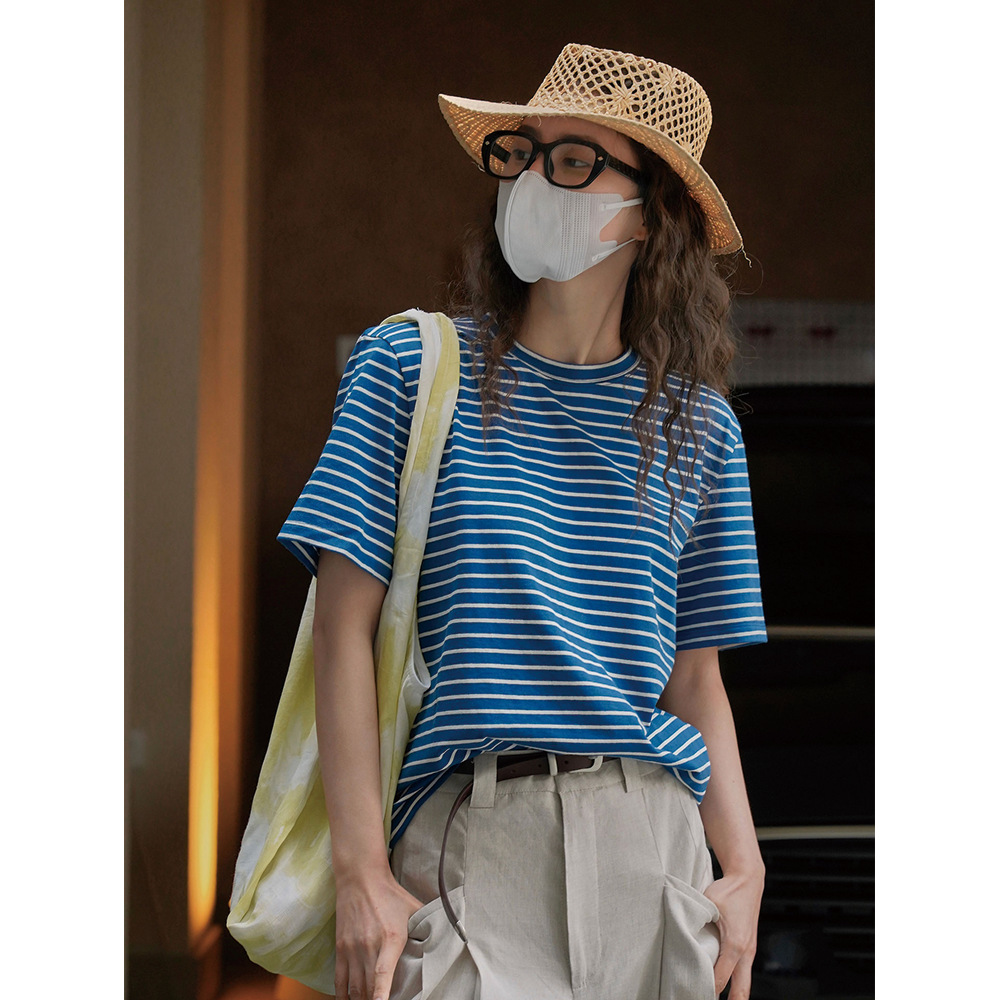 ルーヴル夏新作韓国版シンプルで爽やかなストライプ半袖tシャツがゆったりしていて、着痩せしています。
