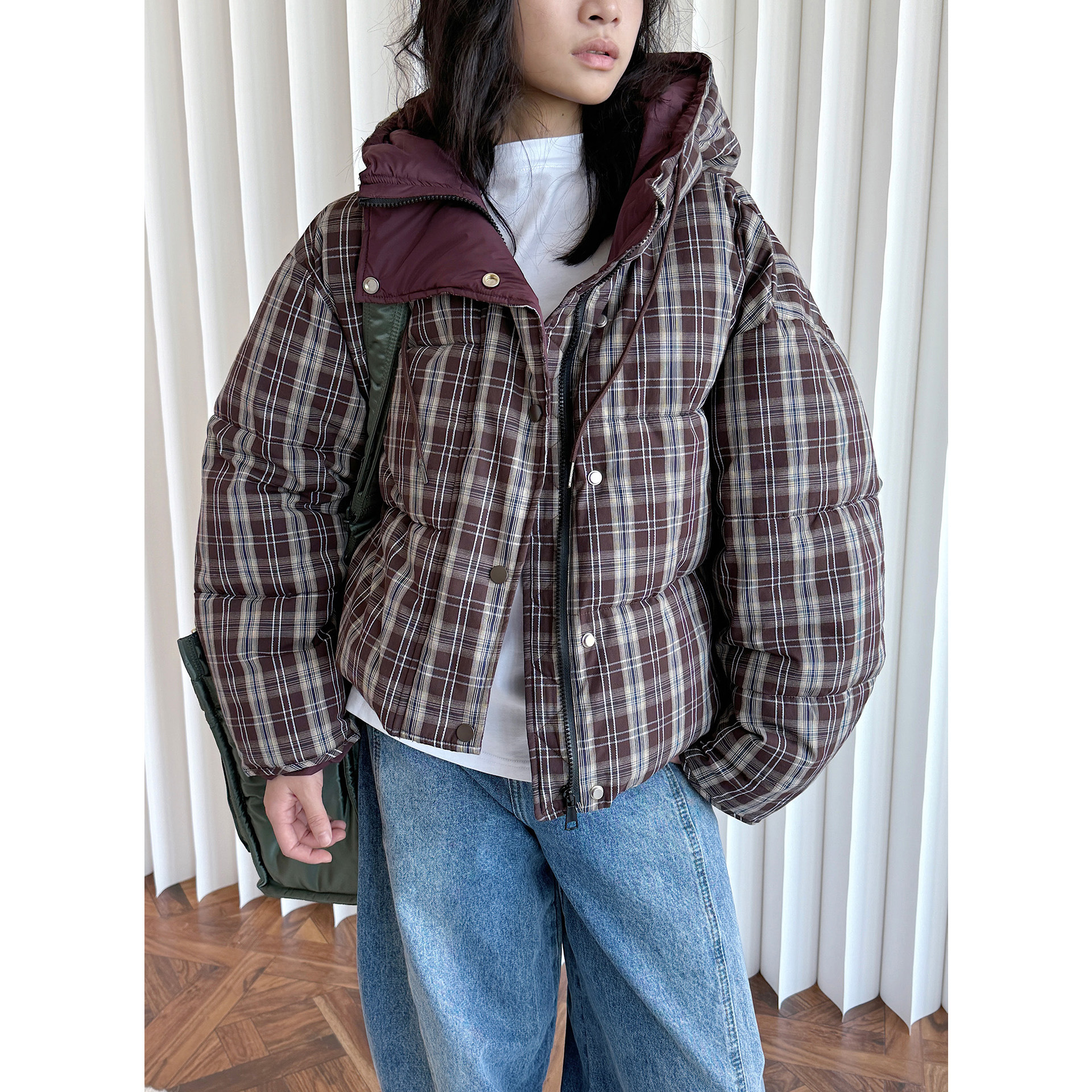 ルーヴル冬の新型韓国版のおしゃれなレトロな格子縞は帽子の綿服と快適で暖かいです。