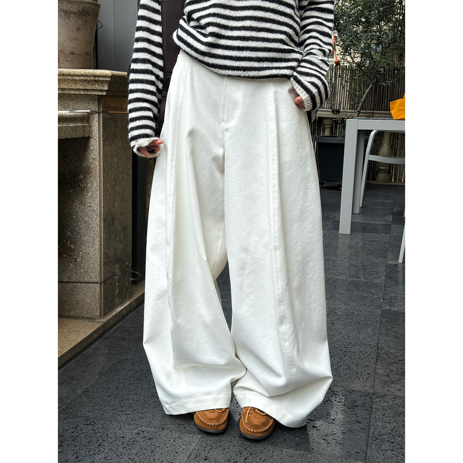 冬の新型日系復古郭形高腰広脚カジュアルパンツがゆったりしていて、綿を挟んで保温ズボンを厚くしています。