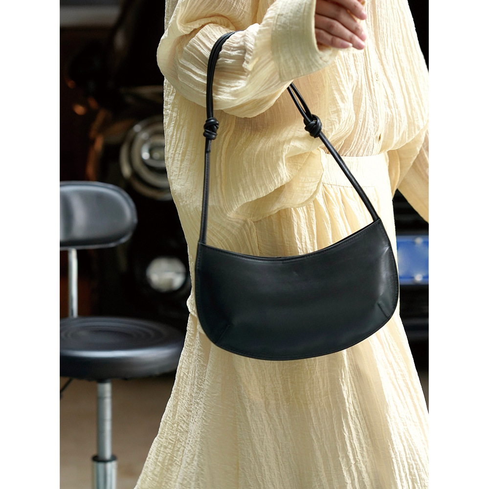 ルーヴル夏新作韓国版おしゃれシンプル羊革脇の下バッグ通勤百合シングル肩手提げ三日月バッグレディース