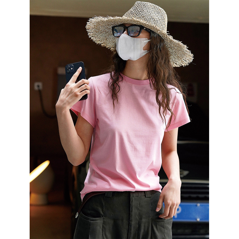 盧浮夏新韓版シンプル清涼丸首半袖tシャツスリム着痩せ清涼快適カジュアル上着女