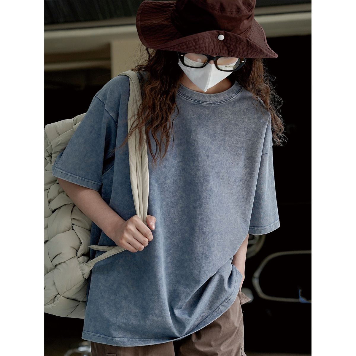 ルーヴル夏の新型韓国insレトロ街頭水洗い雪半袖tシャツが痩せてゆったりとしたカジュアルな上着を見せています。