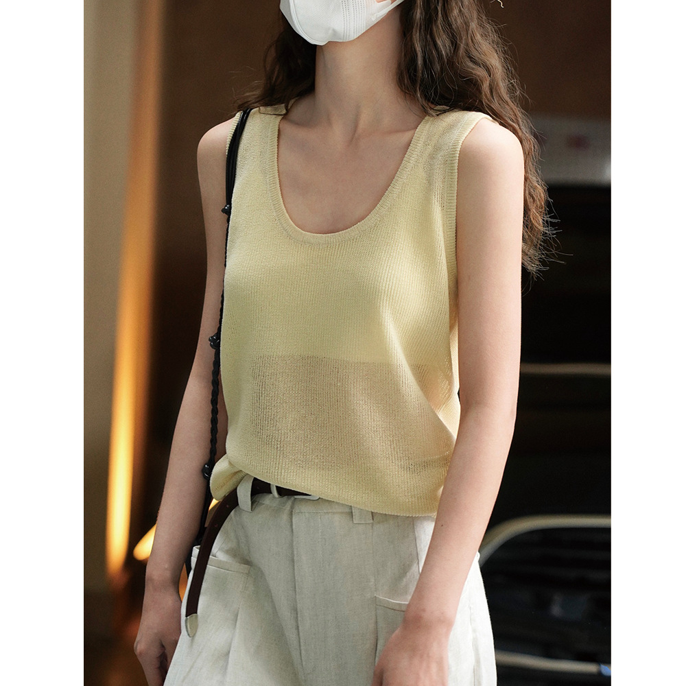 ルーヴル夏新韓版シンプルでおしゃれなuネックのニットベストがゆったりしていて、痩せています。
