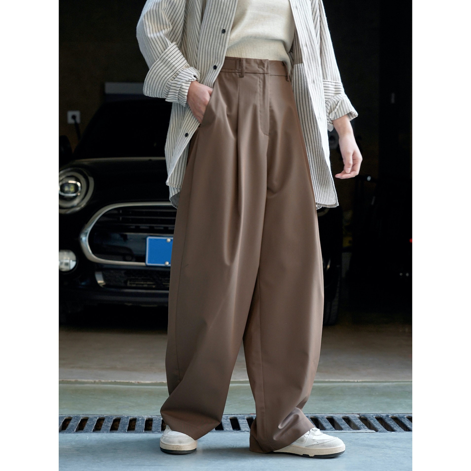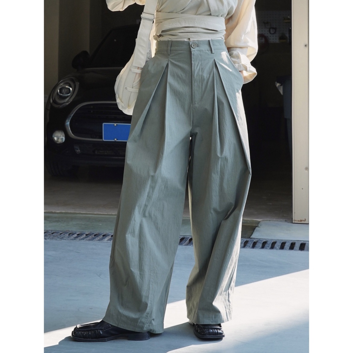 盧浮春の新型韓国版雅痞風通勤高腰広脚ズボンがゆったりしていて、カジュアルなズボンの女性をカバーしています。