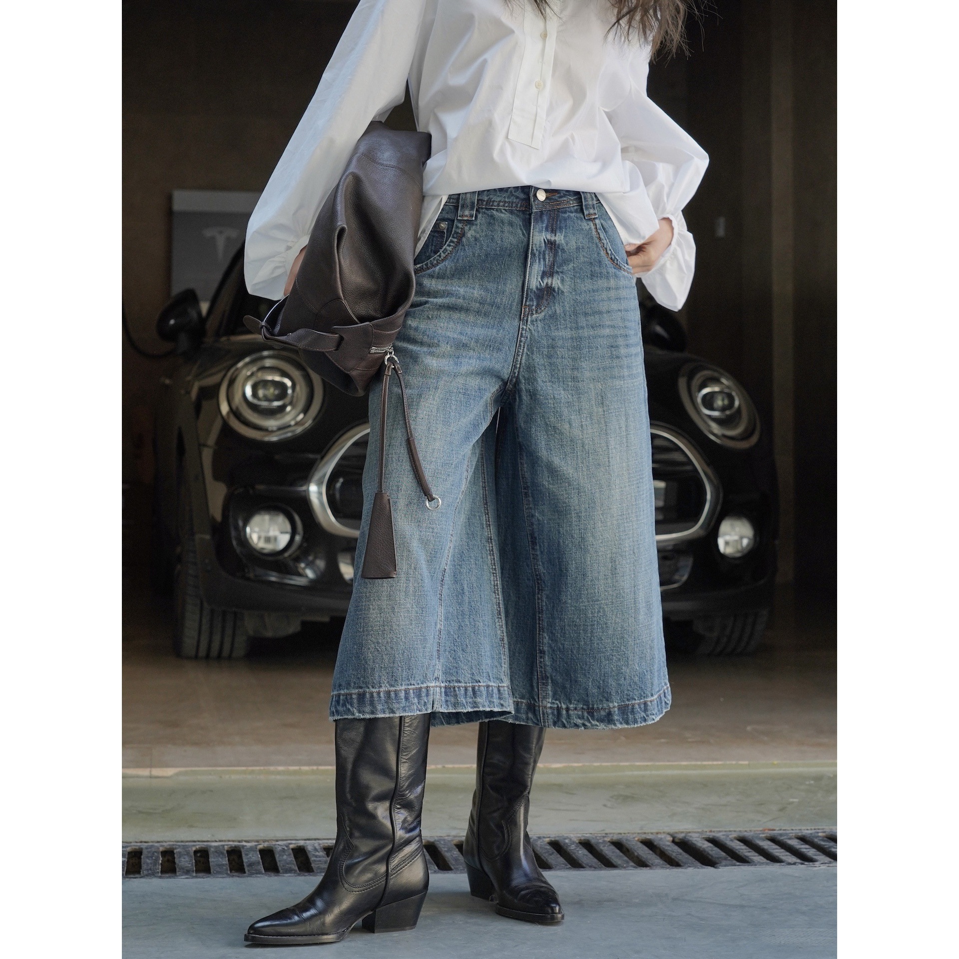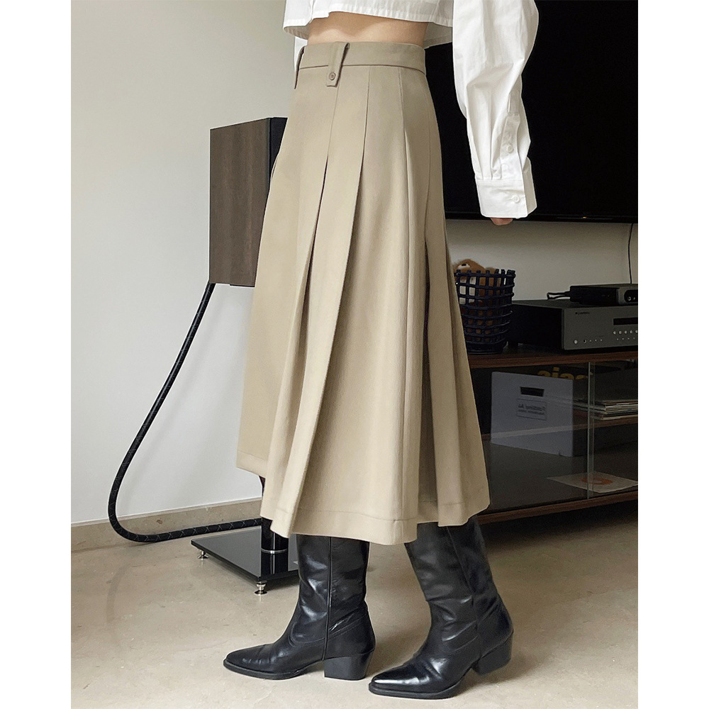 早春の新型韓国版レトロなシルエットの高腰のスカートがゆったりしていて、痩せています。