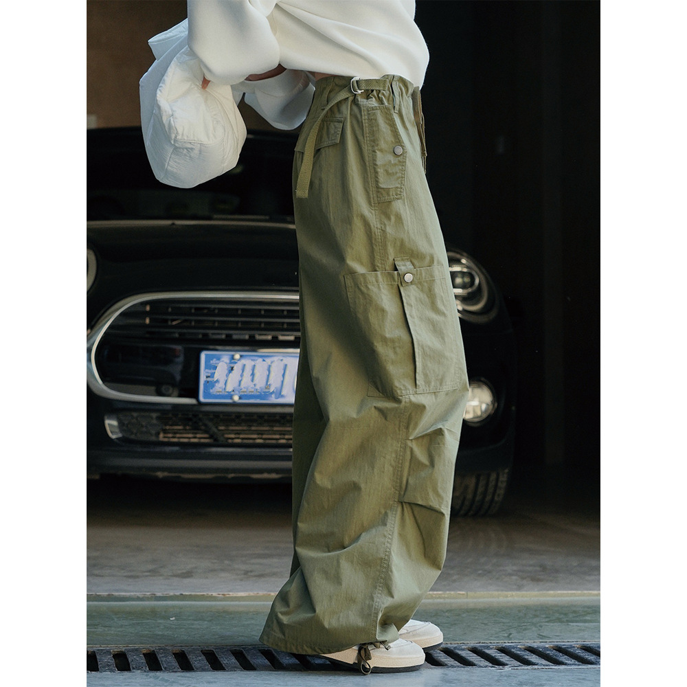 春の新型韓国版ins街頭カジュアルポケットのズボンは広くて、足がゆったりしていて、薄いタイプのカジュアルなズボンの女性が見えます。