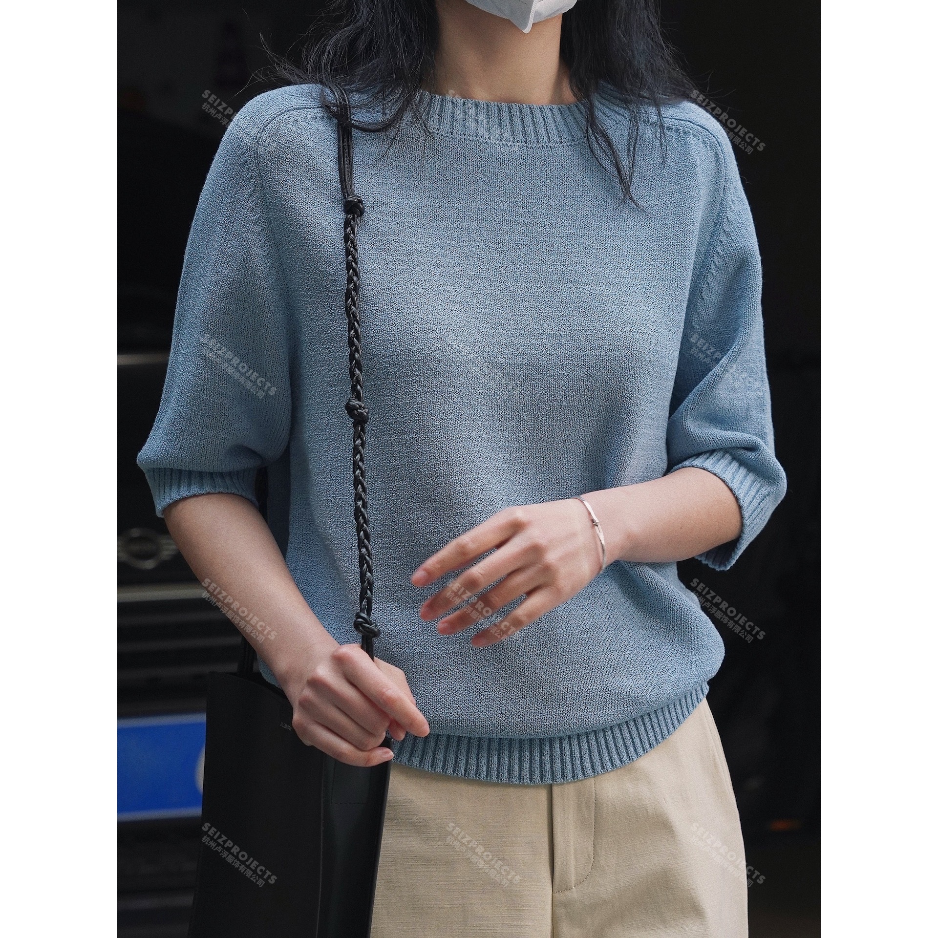 「私密金」春の新型韓国版レトロカジュアル丸首tシャツは快適で肌がゆったりしていて、やせている上着の女性がいます。
