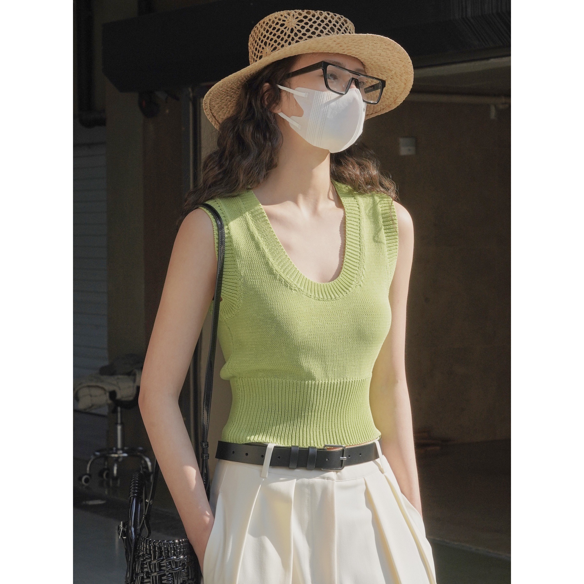 ルーヴル春夏韓国版モダンレトロ大uネックニットベスト