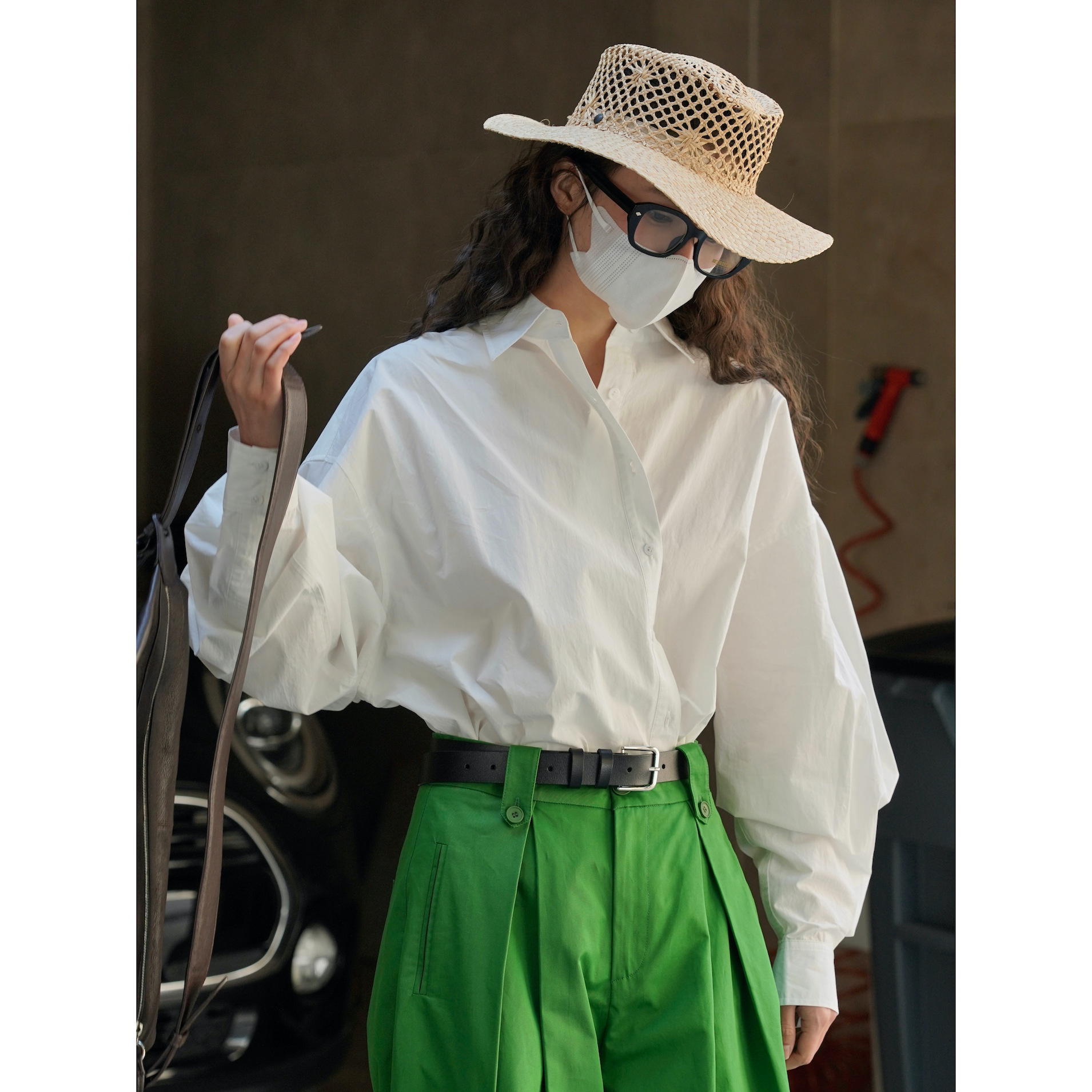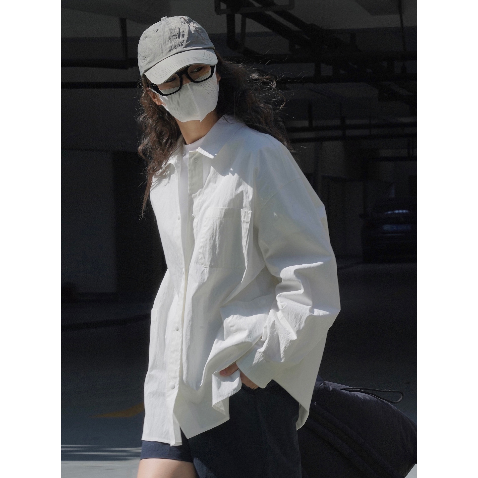 ルーヴル春の新型日系中性風シンプルなデザインの襟付きシャツがゆったりしていて、痩せやすいカジュアルな上着の女性がいます。