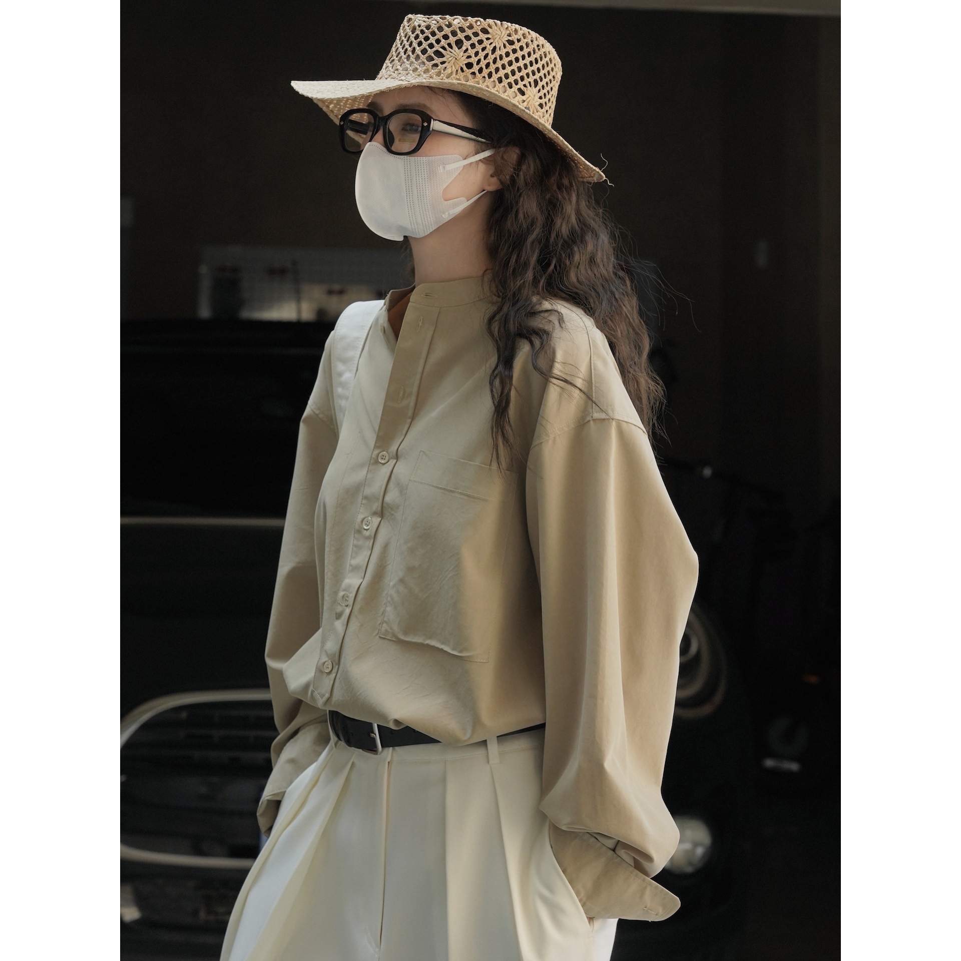 盧浮春夏新作韓国版デザイン感斜め前立てシャツがゆったりしていて、着痩せしています。