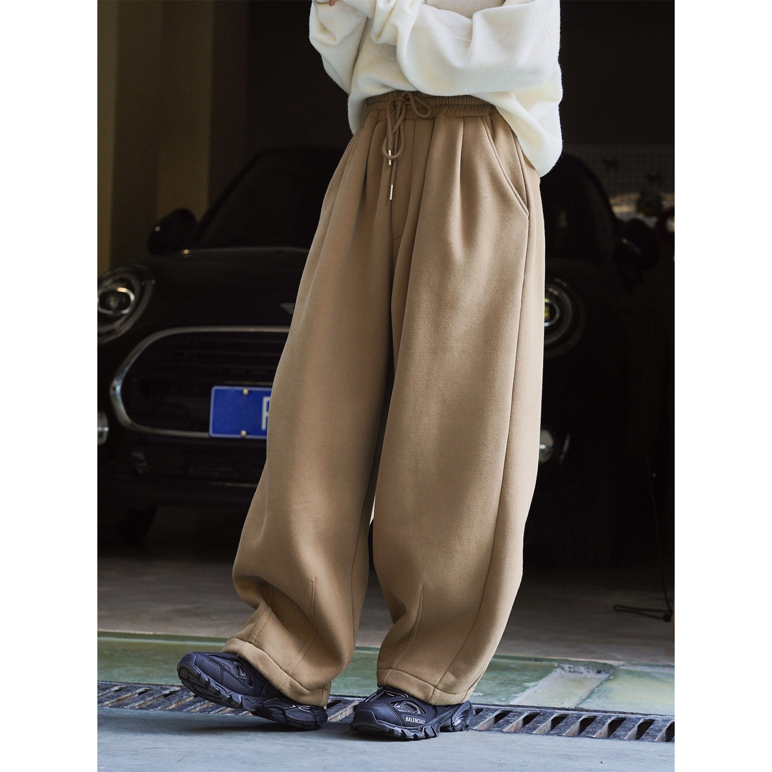 冬の新型の韓国版のレジャーは腰を緩めて構造の設計の衛のズボンのゆったりしている郭の形のベルベットの暖かいズボンの女性を設計します。