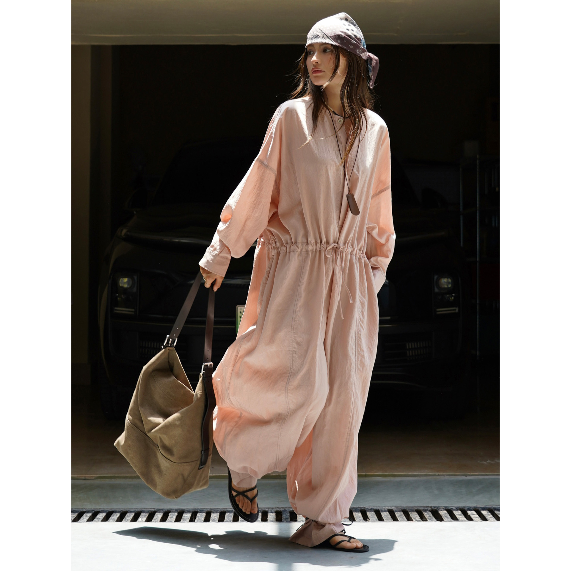 ルーブル初秋の新作パリ LEM リラックスウエストワイドレッグジャンプスーツテンセル滑らかで通気性のある女性用パンツ