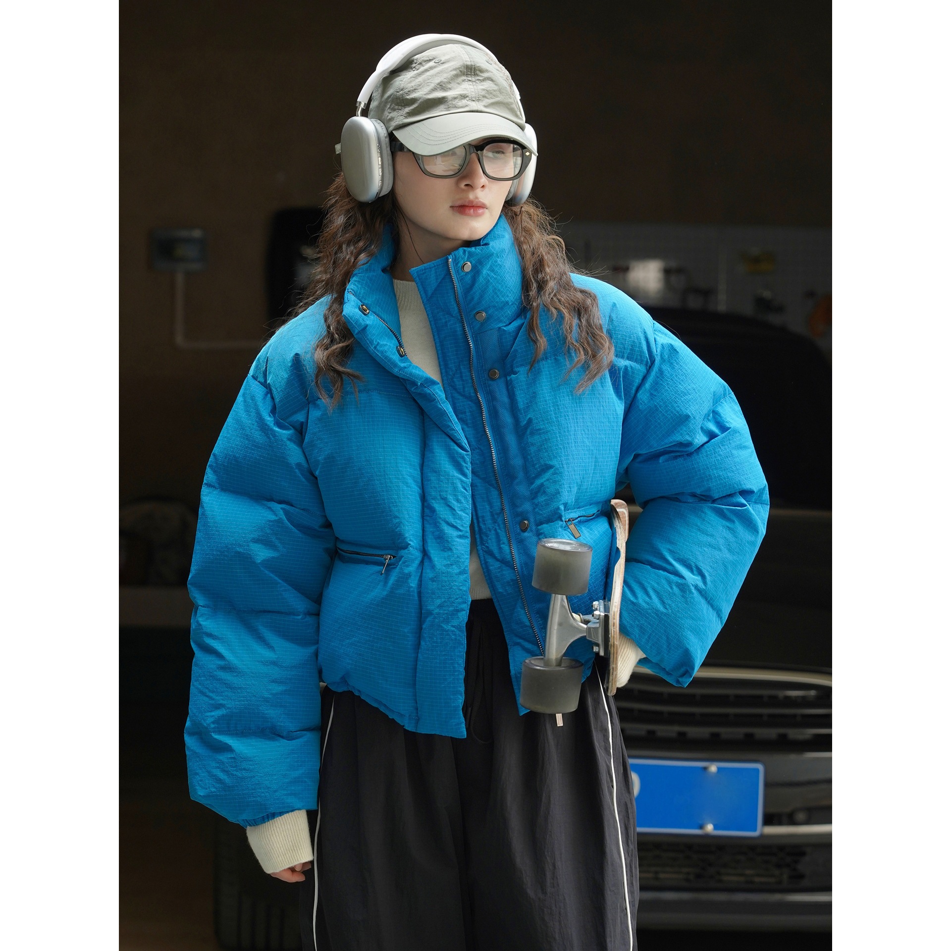 ルーヴル冬新日系カジュアル格子縞筋理立襟ダウンジャケットのゆるい輪郭形90アヒルのベルベットの短いコートの女性