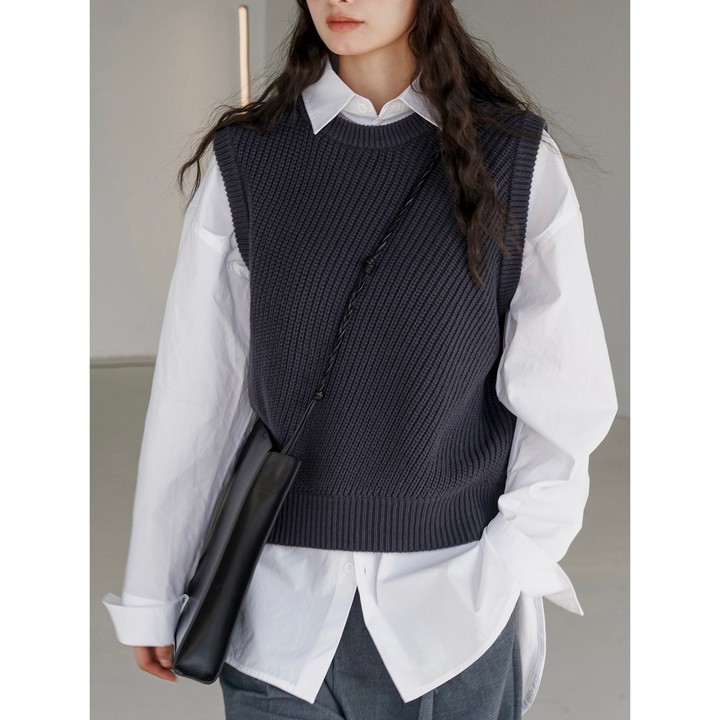 ルーブル秋の新型韓国ins博主風復古ニットベストのゆったりとしたシルエットの重ね着カジュアルベストの女性