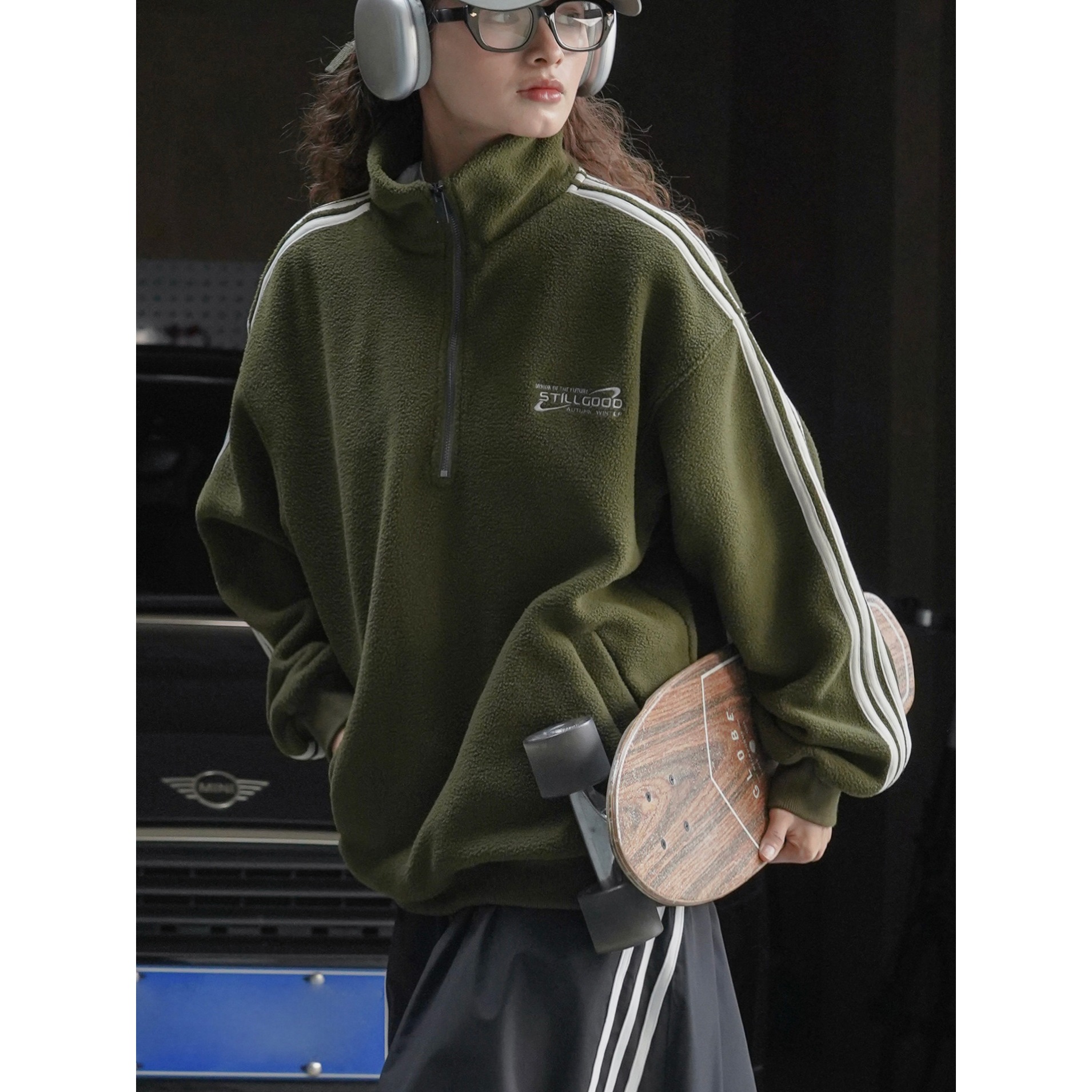 ルーヴル冬の新型アメリカンスポーツのスタンドカラーの刺繍のアルファベットのフリースのスウェットのゆったりとした保温の快適な上着の女性