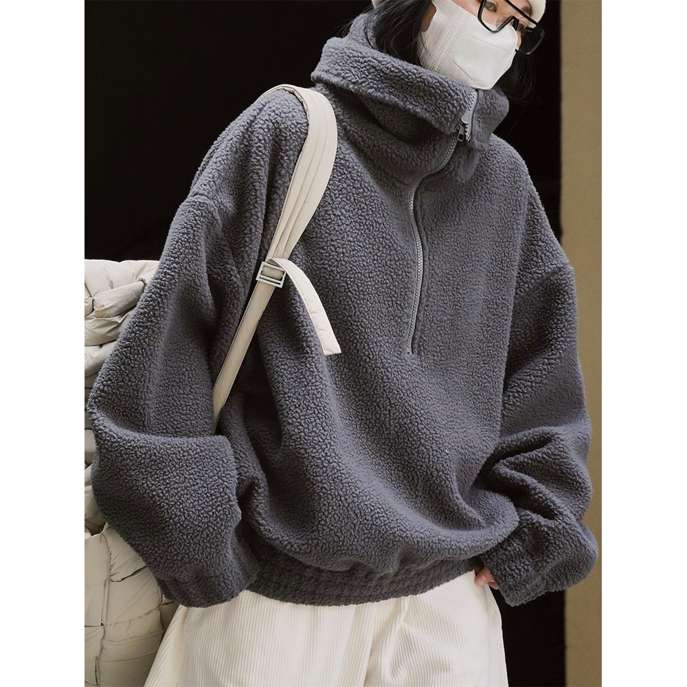 冬の新型韓国のレトロなファッションの大きい折り返しの襟のロックの粒の絨毯のパーカーのファスナーの頭の怠惰で柔らかい上着の女性の厚さ