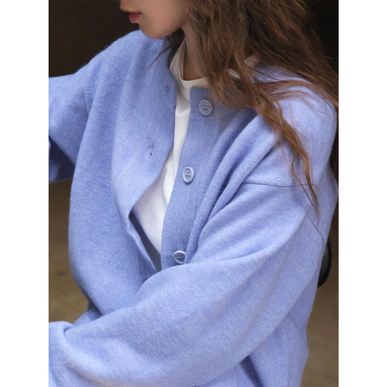 ルーブル秋冬の新型韓国版の怠惰な丸首のウールのニットのカーディガンの繊細で柔らかいモチとした厚い保温の上着の女性