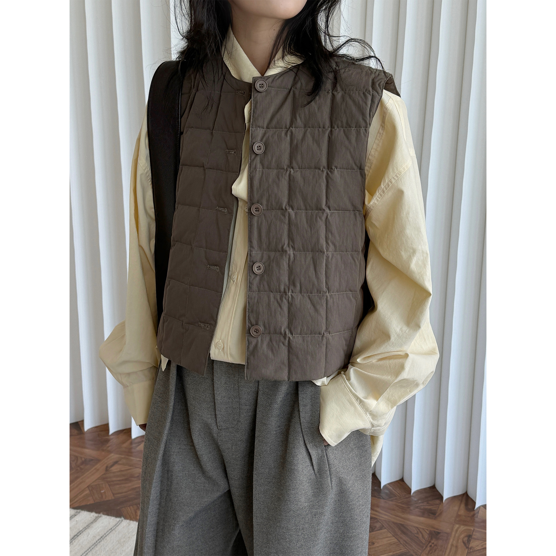 ルーヴル春新作パリ文芸デザイナー風レムワッフルダウンベストカジュアルショートトップ女性