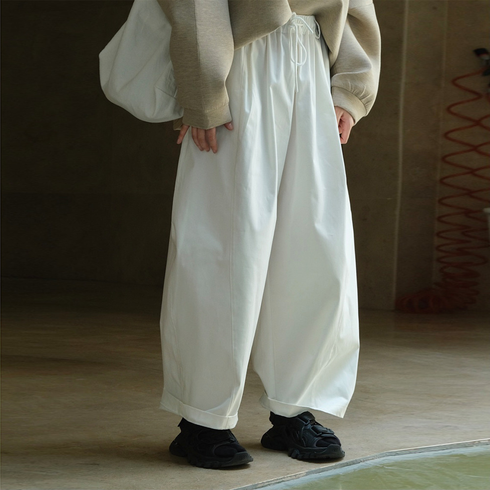 盧浮秋の新型日本式の怠惰な高腰のワイドレギンスのズボンの女性のゆったりしている形はやせているアウトドアのズボンの女性を現します。