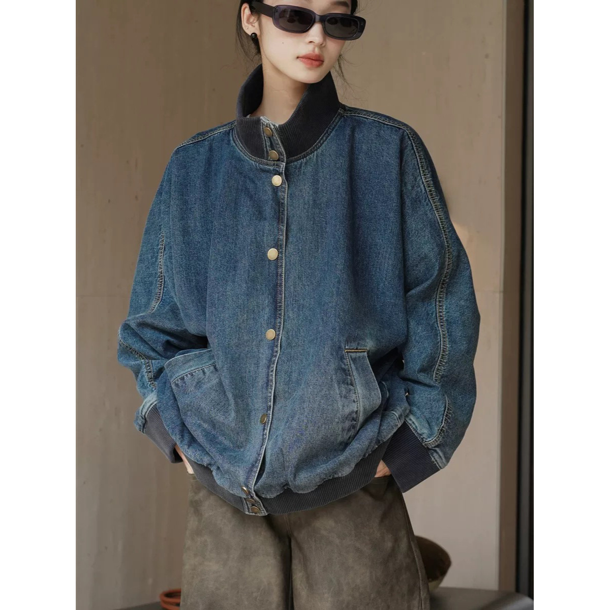 ルーヴル秋の新型アメリカンレトロ街頭風立襟カウボーイ機関車ジャケットゆるいシルエットカジュアルコート