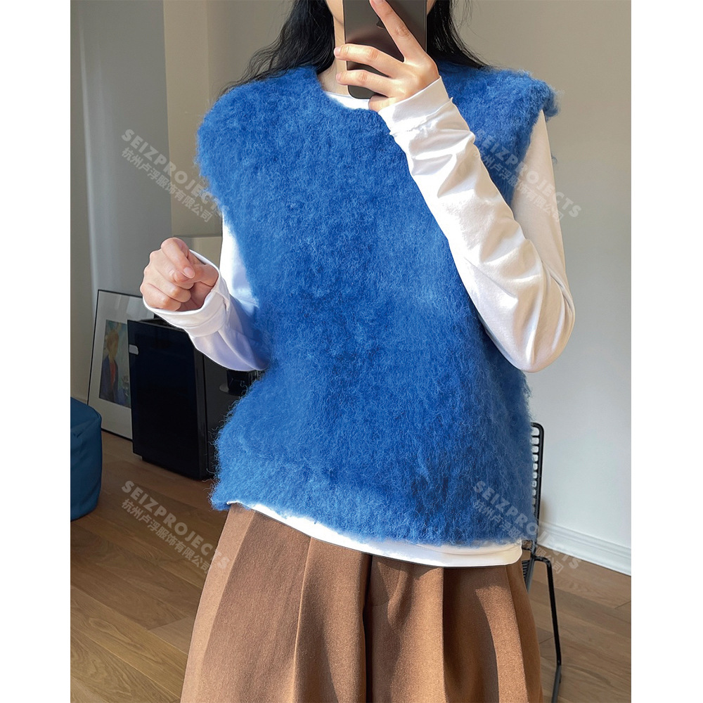 ルーブル秋の新作ロングヘアヘイジーラウンドネックウールニットベストルーズスリミングレイヤードノースリーブ