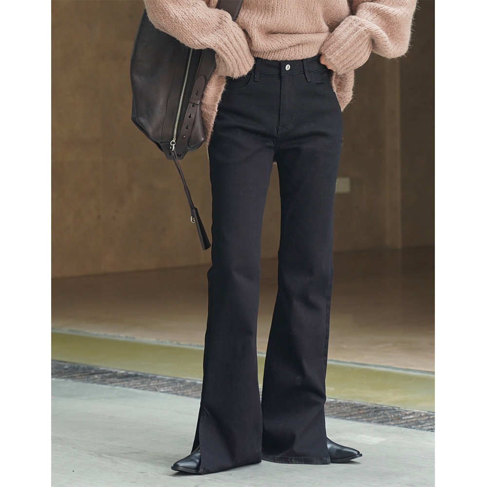 秋冬の新型の韓国系の復古の小さいラッパの足の口はフォークの高い腰のジーパンの柔らかい微弾のゆったりしているズボンの女性を伸ばします。
