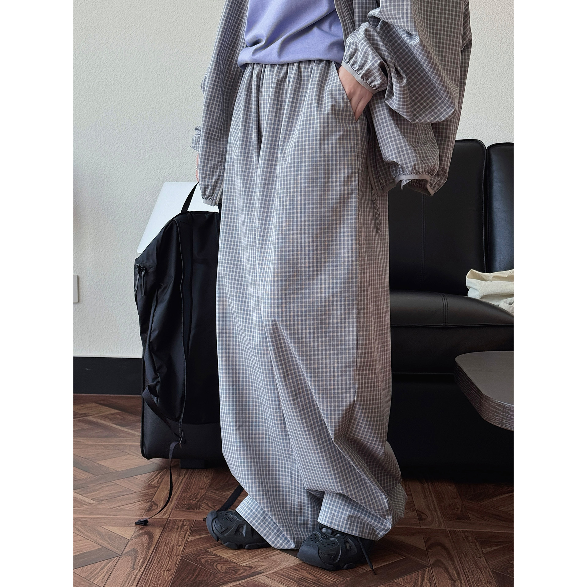 ルーヴル夏の新型韓国系ファッションクール颯秀場感の細かい格子縞のカジュアルパンツがゆったりしています。
