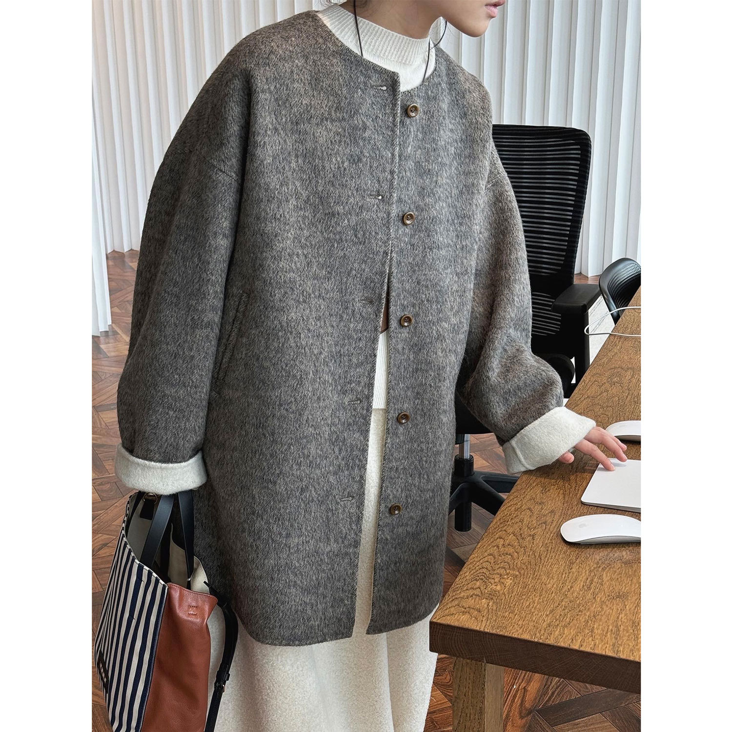 ルーブル秋冬新韓版ファッションウール両面ラシャコート