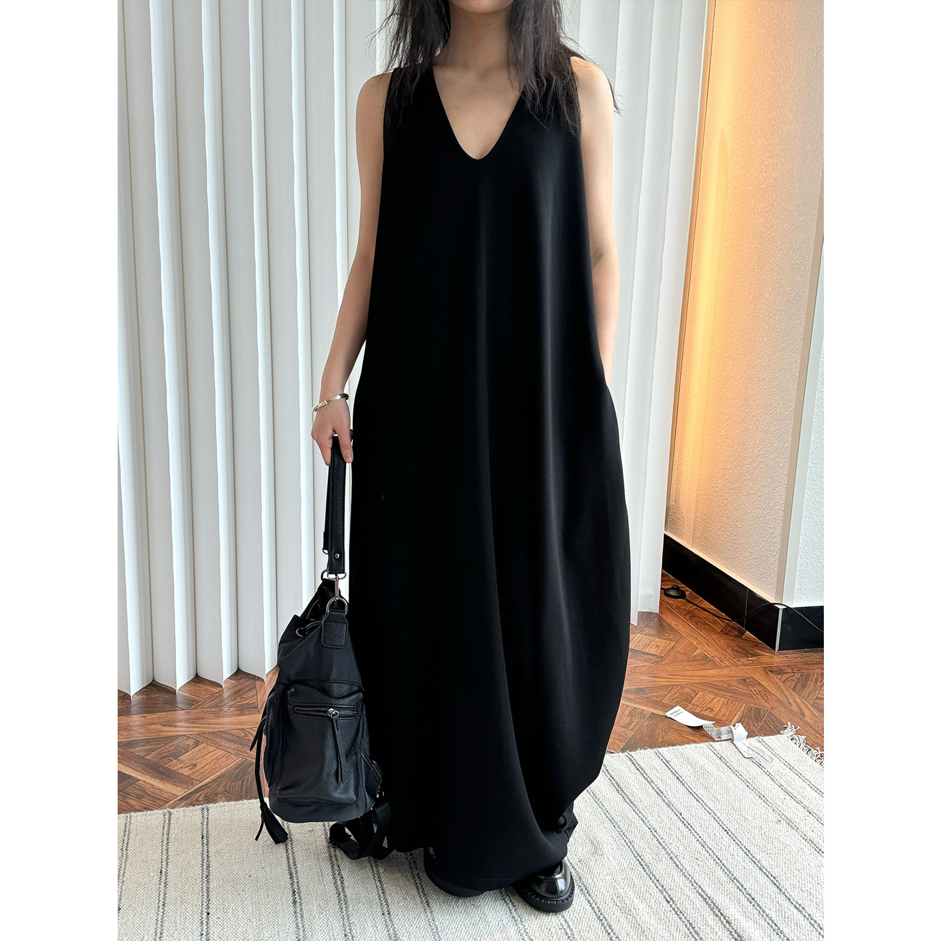 盧浮早春新作フランス文芸深U非対称アーチ形花蕾ワンピースソフトモチQ弾顕痩せロングスカート女