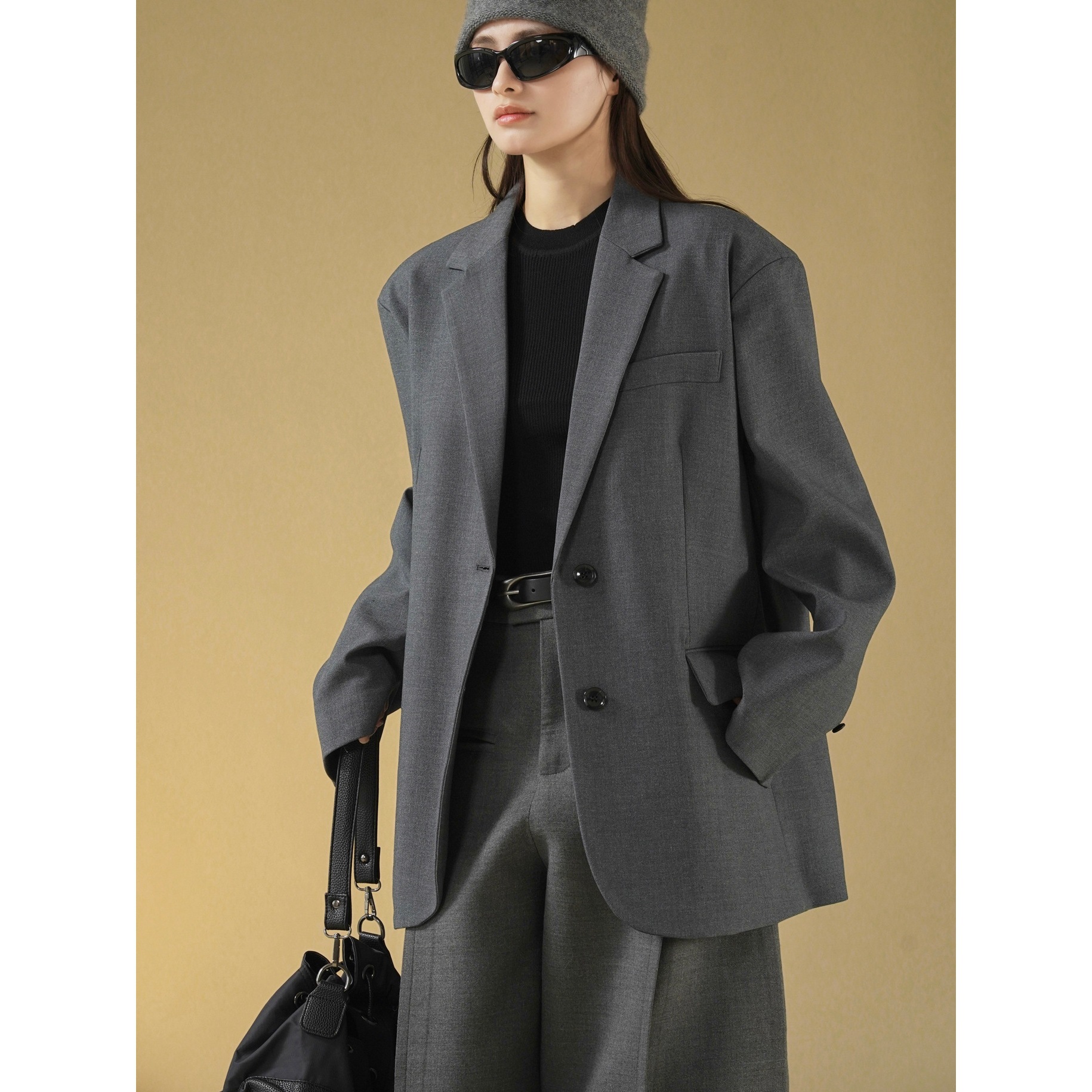 ルーヴル早春の新型パリのシンプルな博主の風の郭の形の広い肩のスーツはゆったりしていて、やせています。