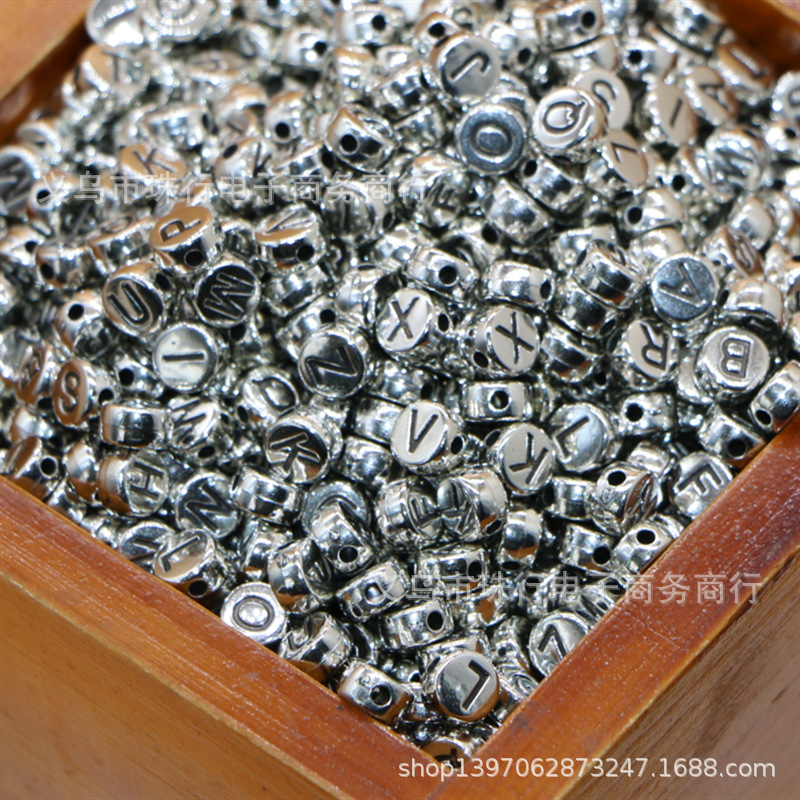 卸売り4*7mm白k色字母珠アクリルアクセサリーuvメッキ字母珠ビーズ200pcs/バッグ