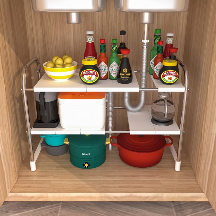 台所の下の水槽の物置棚の伸縮できる食器棚の多層の調味料棚の鍋の道具の収納棚の食器棚の調理器具の物置