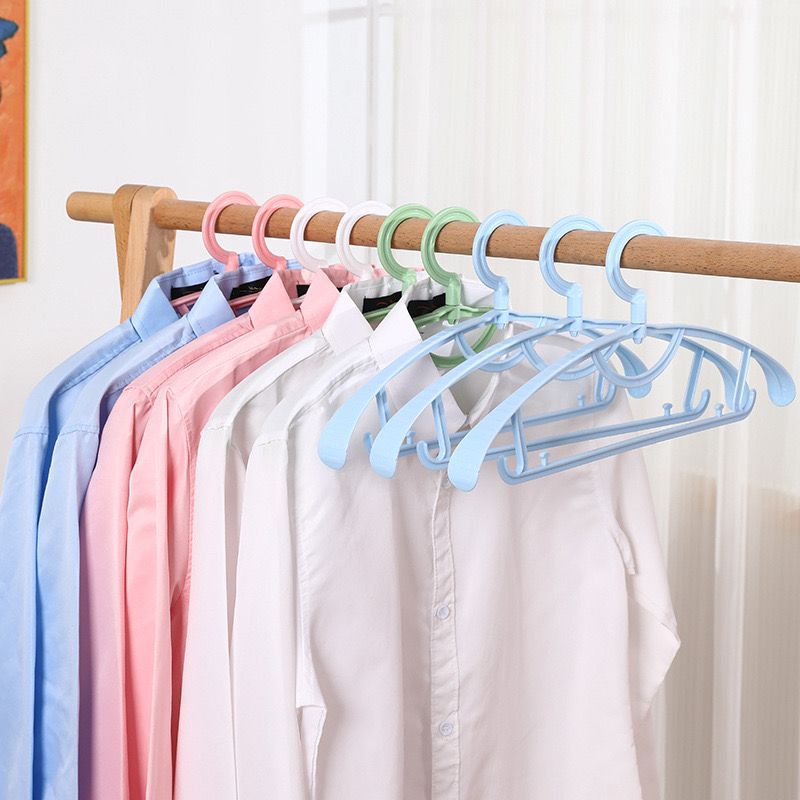 家庭用厚手のシンプルな無痕滑り止めハンガーの肩幅が回転して洗濯物を干します。