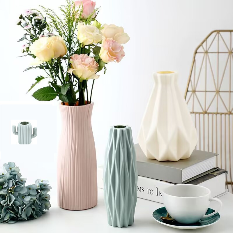 北欧スタイルの模造陶磁器花瓶プラスチック花瓶家庭用リビングオフィスの装飾アイデアシンプルな花瓶卸売り