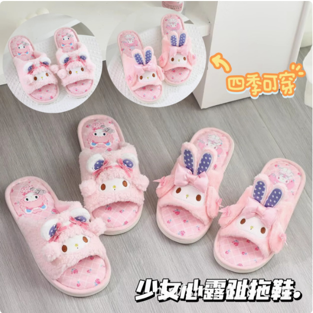 春の夏の漫画のかわいい少女の心の美楽の茎の子羊のぬいぐるみの足のスリッパの家の室内の床の冷たいスリッパ