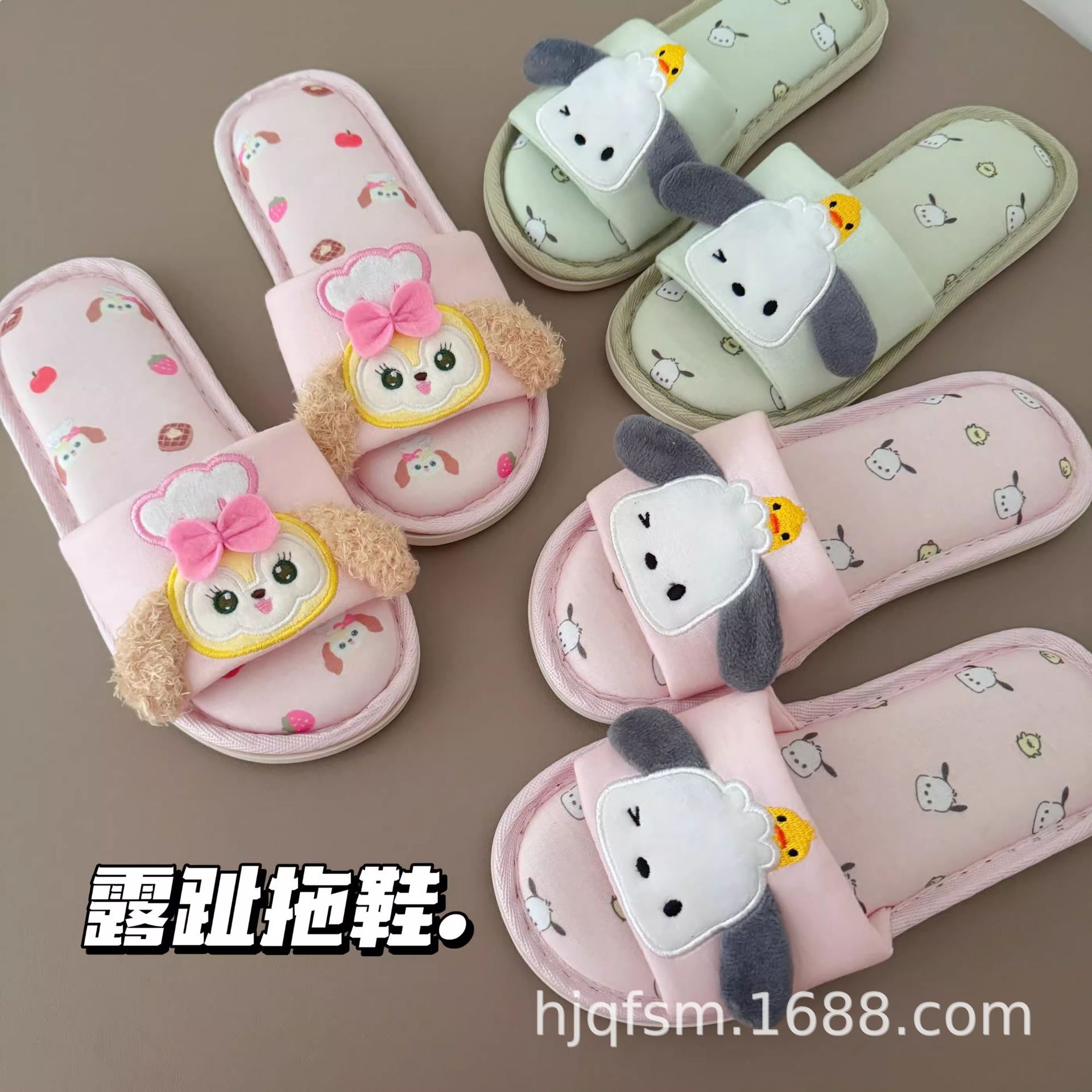 春の夏のかわいい漫画のコックの犬のPCの女性のぬいぐるみの口のスリッパの家庭の室内の床の露指の冷たいスリッパ