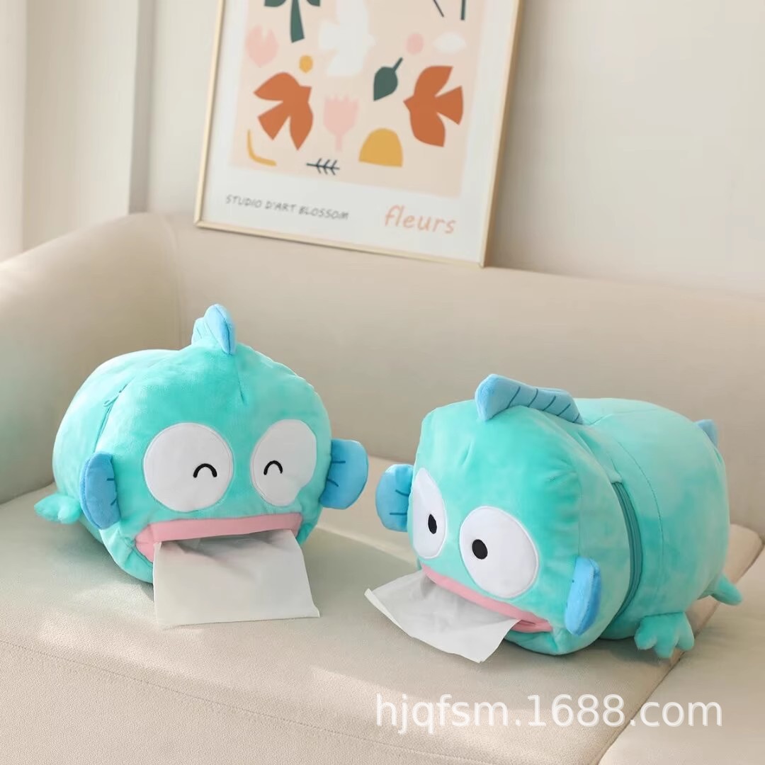 日本式の漫画のかわいい人魚の漢トンの醜い魚のぬいぐるみの車のティッシュは家庭用のティッシュの箱を引き出して紙のカバーを引き出します。