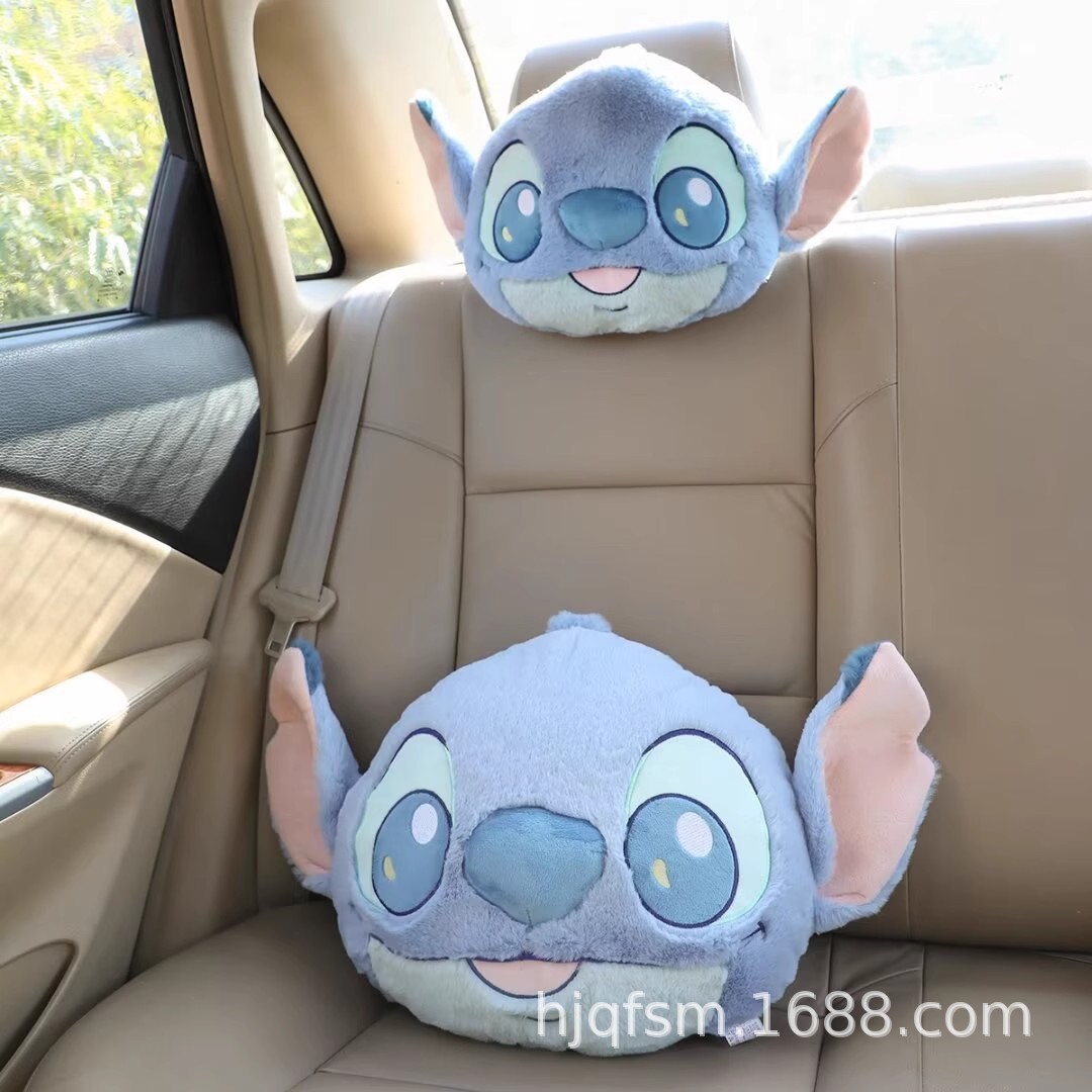 漫画かわいいスティッチ車のヘッドレスト車用首保護枕頚椎枕シートクッション腰保護枕抱き枕内装