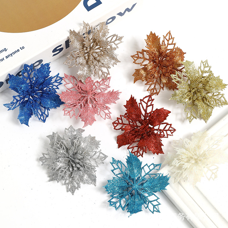 9cmのシミュレーション花クリスマス祭りのネギの粉は透かし彫りの花のクリスマスツリーの花輪を持って飾ります。