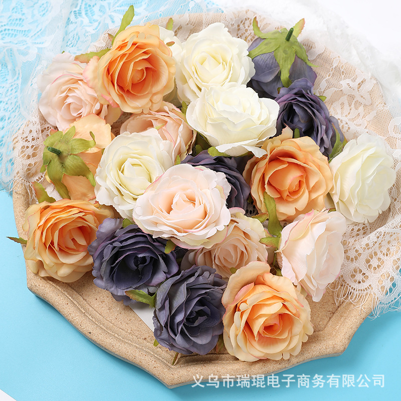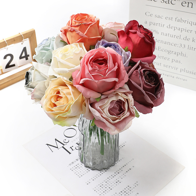 模造巻きバラの花束絹花diy手作り生け花6頭の手で花の家を縛って結婚祝いを飾る
