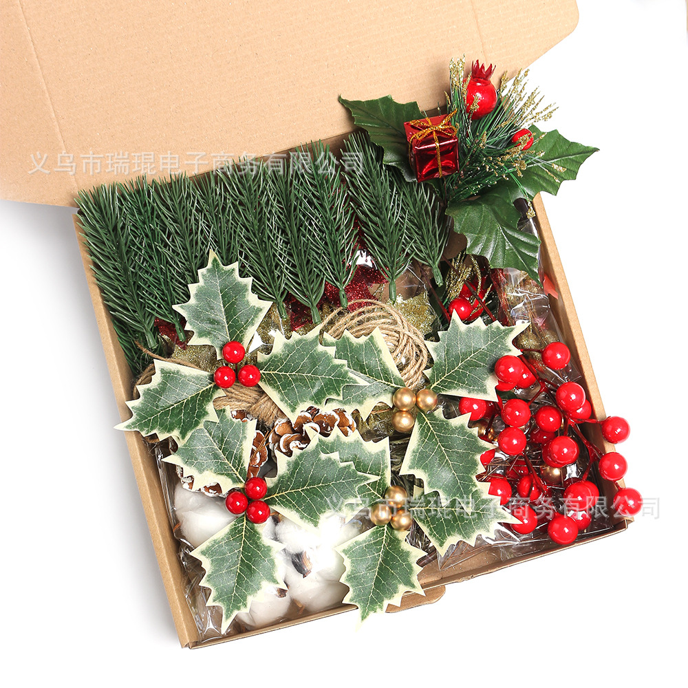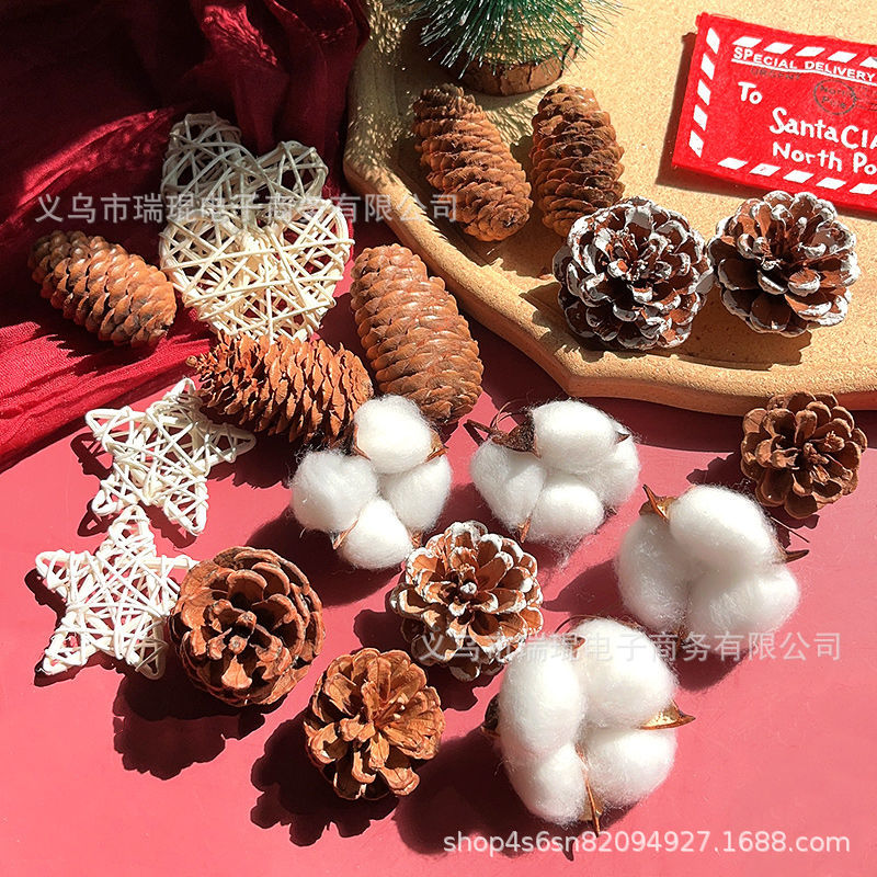 クリスマスシミュレーション松果手作りdiyギフトボックス材料バッグセットクリスマス装飾白い雪花松果