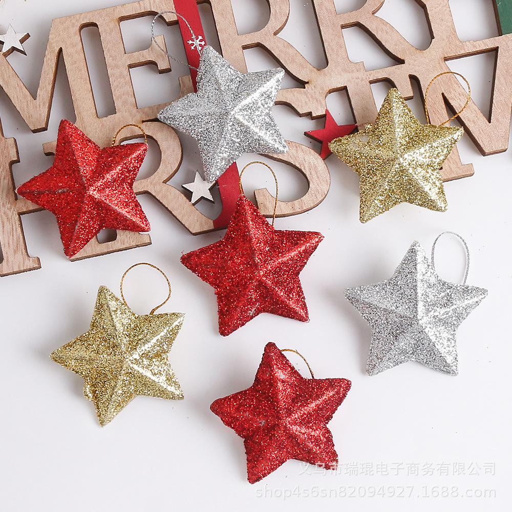 クリスマスクリスマスツリー装飾品五角星帯金粉パーティー赤金銀色星ペンダントクリスマスツリーアクセサリー