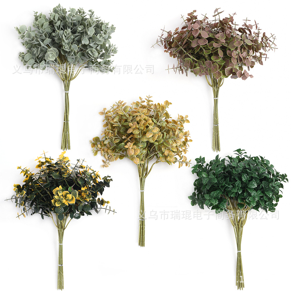 シミュレーション植物ユーカリの花束の家の装飾はミントの葉の偽の緑を国境を越えてよく売れています。