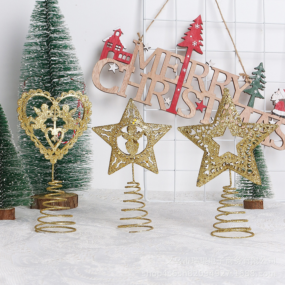 クリスマス鉄芸粘粉透かし彫り樹頂星クリスマスツリー装飾品キラキラ五角星星トップ装飾