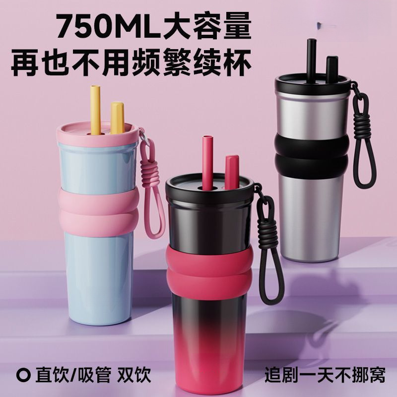 大容量不锈钢新款高颜值随行陶瓷便携保温车载吸管咖啡杯