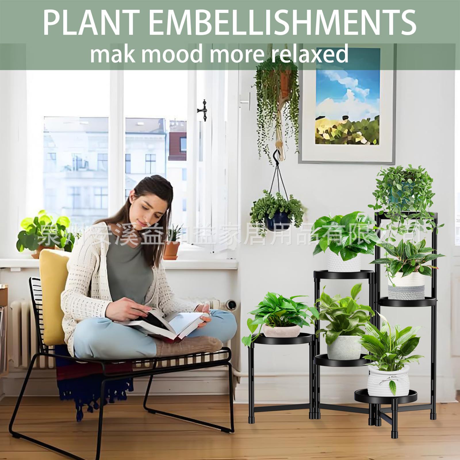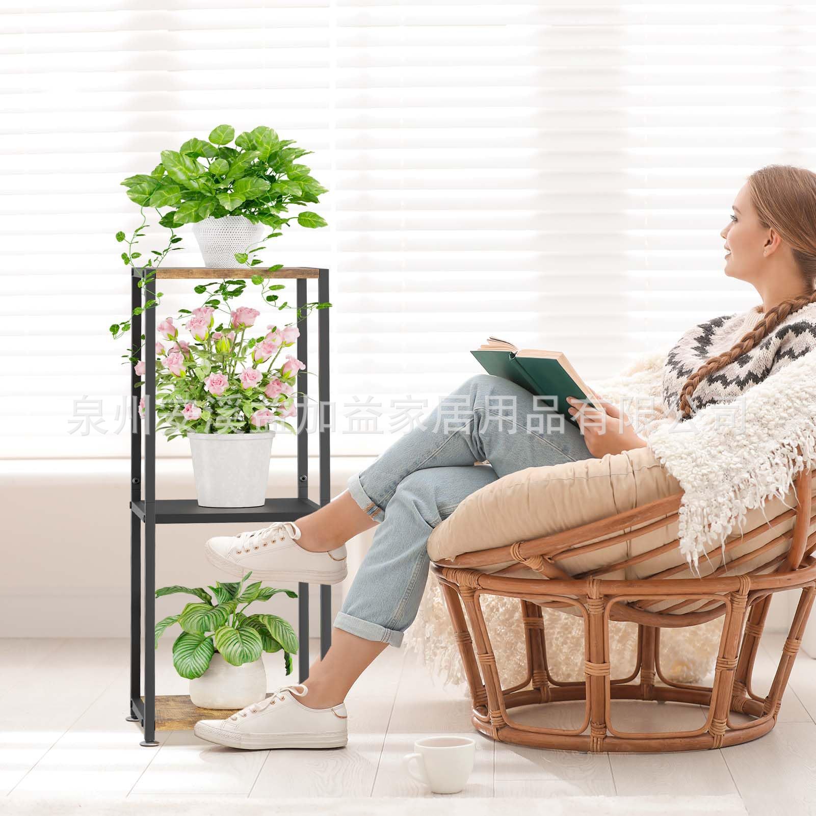 国境を越えた現代のシンプルな床置き式多層花架緑の花盆架客間バルコニー金属植物架